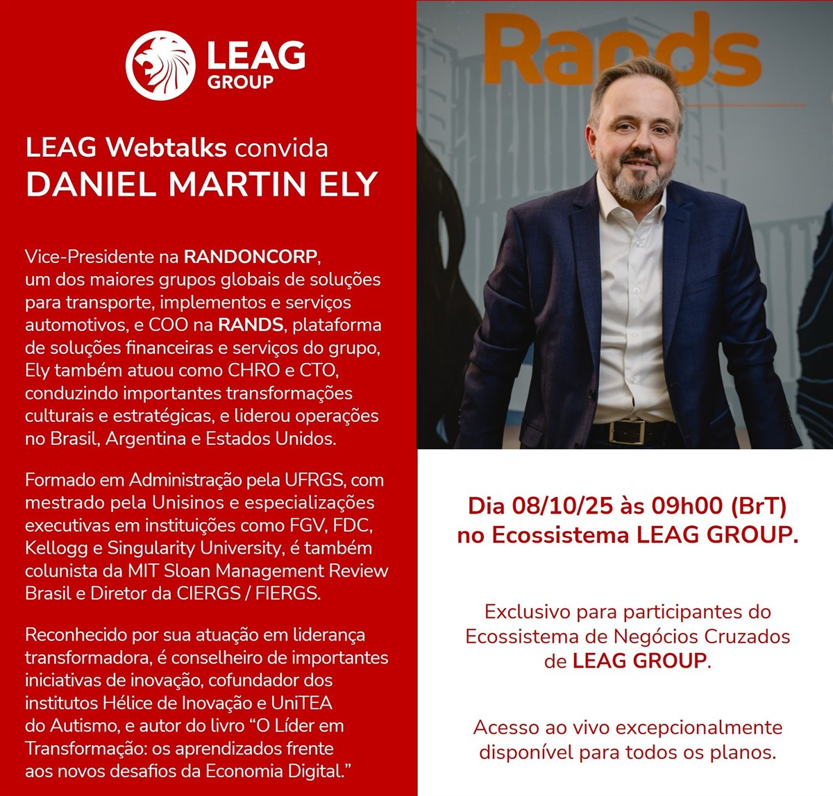 É sobre isso que fala nosso próximo LEAG WEBTALKS: “O Líder em Transformação - do comando e controle à liderança em rede e o novo papel dos líderes na era dos ecossistemas empresariais”