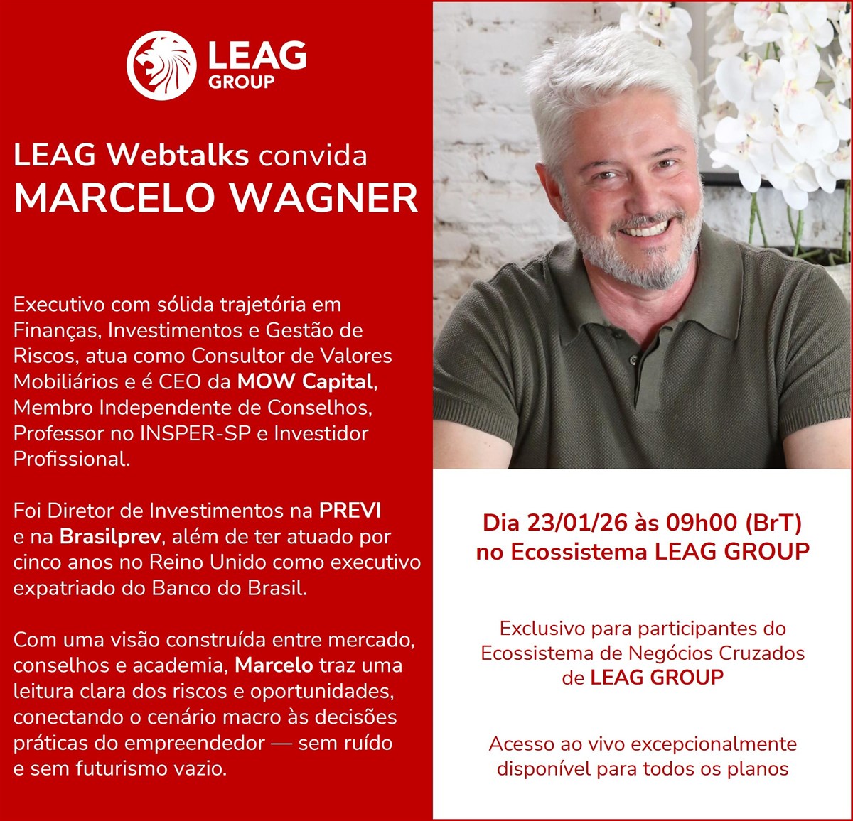 O 1º LEAG WEBTALKS de 2026 vai direto ao ponto: crescimento, inflação, juros, crédito, produtividade, regulação, geopolítica e IA moldam o ambiente em que as PMEs operam. A isso se somam os efeitos práticos da reforma tributária, que exigem maior atenção à gestão do fluxo de caixa no curto prazo e tendem a impactar consumo, preços e eficiência ao longo da transição.