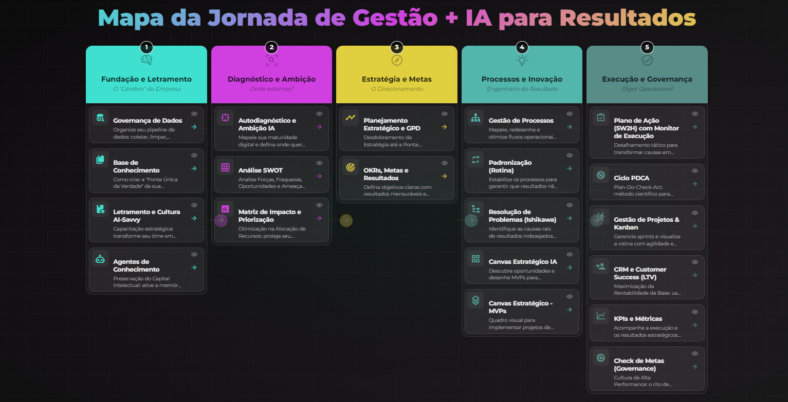 GESTÃO + DADOS + IA, ECOSISTEMA GESTÃO, IA PARA NEGÓCIOS, GOVERNANÇA DE DADOS + IA, BASE DE CONHECIMENTO + IA